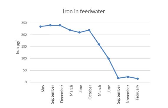 Dánská společnost pro dálkové vytápění, Hvide Sande Fjernvarme, řešila problém vysoké hladiny železa v napájecí vodě. Manažer výroby, Martin Kristensen, situaci popisuje takto: