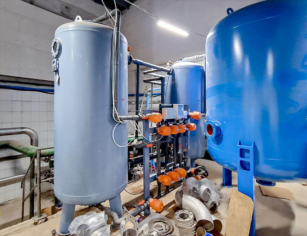 The solution also includes a softening unit for the process water, which is used, among other things, for centrifugal pumps and as pre-treatment in the boiler room.