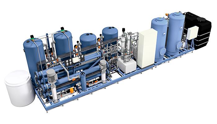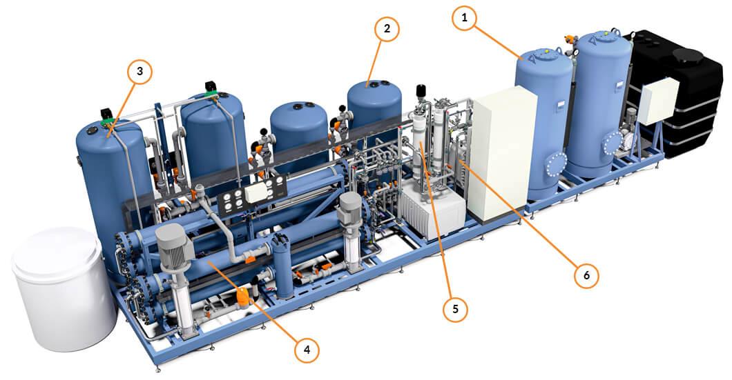 The EDI unit is used after the RO system for polishing of demineralized water to obtain low levels of conductivity.