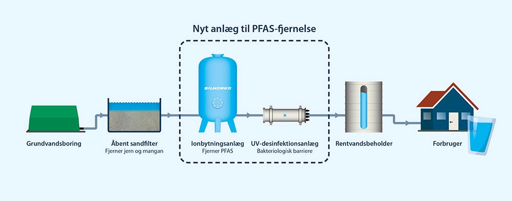 At the turn of the year, the limit value for the content of PFAS in drinking water was significantly lowered from 100 to two nanograms per litres. At Fanø Vand, the PFAS content is four nanograms per liters – twice the new limit value.
