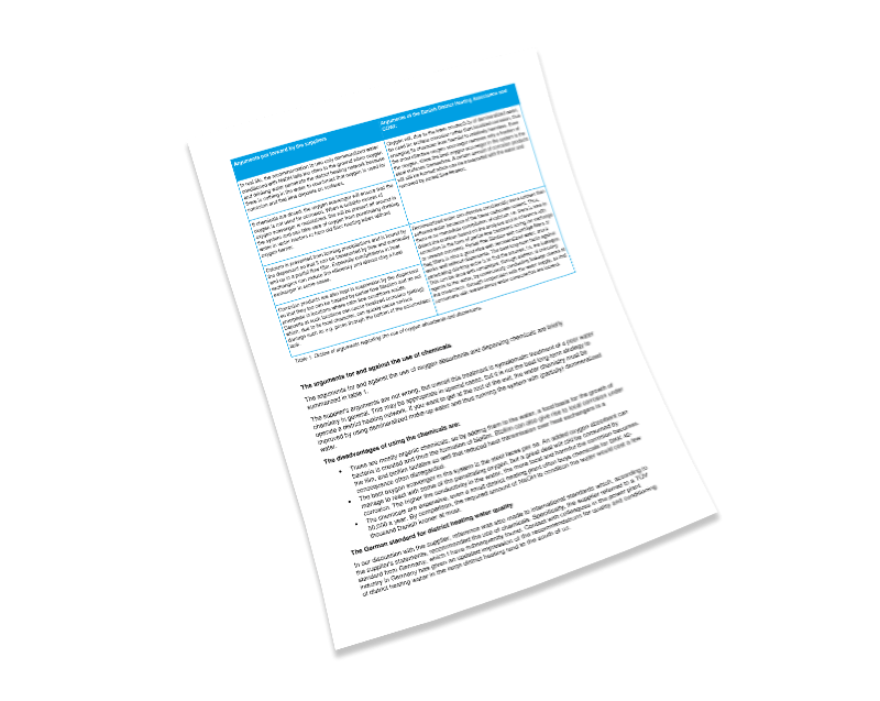 A Dán Távhőszolgáltatók Szövetsége ajánlásokat tett közzé a helyes vízkezelésre vonatkozóan az olyan kulcsfontosságú komponensek élettartamának növelése érdekében, mint a kazánok, szelepek, szerelvények, berendezések és föld alatti csővezetékek.