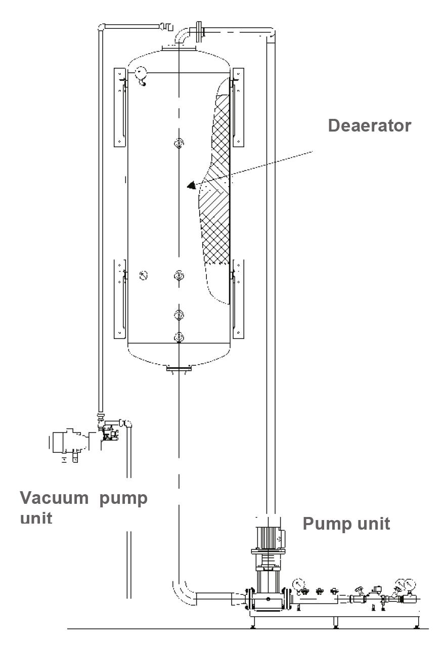 A vákuumszivattyú hozza létre a szükséges vákuumot a feltöltővíz felforralásához. Amikor a víz felforr, az oxigén felszabadul és a vákuumszivattyú segítségével kerül eltávolításra. A gázmentesített víz két részre osztódik, egyik része a távfűtő hálózatba, a másik része pedig a gáztalanító tartályban kerül újrahasznosításra.