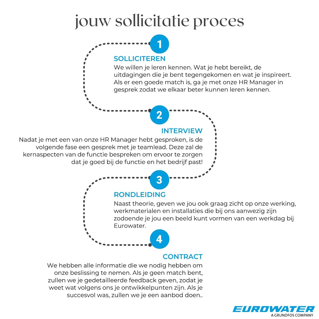 We zijn continu op zoek naar nieuwe collega's en je bent altijd welkom om een sollicitatie inclusief cv te sturen naar jobs.be@eurowater.com. Vermeld als onderwerp "Spontane sollicitatie".