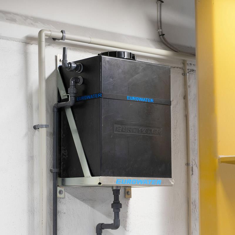 Vattnet från SILEX-systemet lagras i en 50 liters vattentank, som är utrustad med nivåkontroll för start/stopp och överflödesskydd.