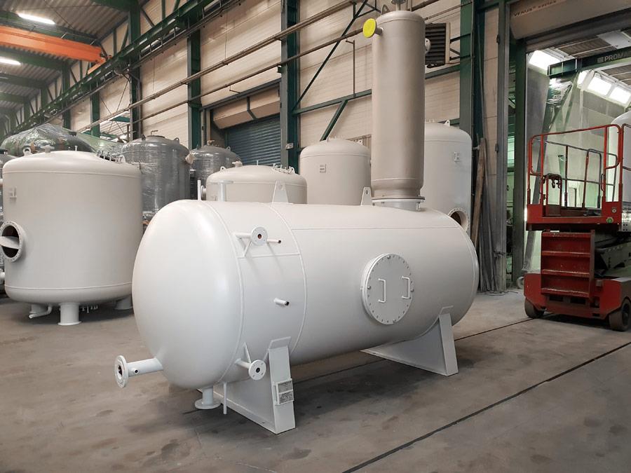 Båda typerna är byggda med cylindriskt kärl av stål med ändlock för högre trycktolerans och finns i standardmoduler upp till 40 m3/h.